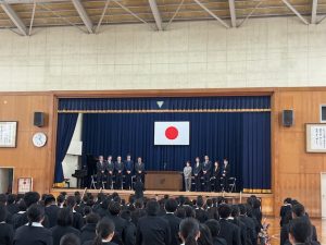 HOME > 青陵トピックス > 【今週の一枚】 令和8年3月第3・4週 【今週の一枚】 令和8年3月第3・4週 入力日2026年3月25日 閲覧数642 今週は修了式・退任式を行いました。修了式では、皆勤賞の表彰、修了証書授与、校長式辞がありました。 退任式では退任される先生方からのお話をいただき、これまでの感謝の気持ちを生徒会長が在校生を代表して伝えました。 今年度も武雄青陵中学校の教育活動にご理解とご協力をいただき、ありがとうございました。次年度もよろしくお願いいたします。 一覧へ戻る 次へ