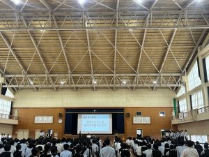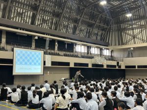 水曜日のキャリア教育講演会はケーブルワンスポーツパークのメインアリーナで元フジテレビアナウンサーの西岡孝洋さんに講演をしていただきました。「夢を持つこと」や「好きなものを極めることの重要性」、「トップアスリートを取材して学んだこと」をわかりやすく伝えていただきました。