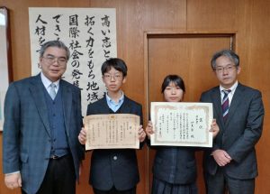 会長賞 3年 小原 唯愛 さん 会長賞 3年 江口 璃子 さん