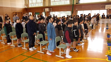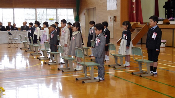 HOME > 学校行事 > 武内小ニュース > 4/9 入学式 4/9 入学式 入力日2026年4月13日 閲覧数12 4月9日(木)に令和8年度 武内小学校入学式が行われました。今年度の新入児は14名です。かわいい1年生は、盛大な拍手の中6年生に手を引かれ、少し緊張した面持ちで入場してきました。新入児紹介では、担任の先生の呼名で全員が大きな声で「はい」と返事をして、2~6年生や保護者がいる後方を振り返って一礼ができました。これから早く小学校生活に慣れて、楽しく元気に過ごしてほしいと思います。 前へ 一覧へ戻る