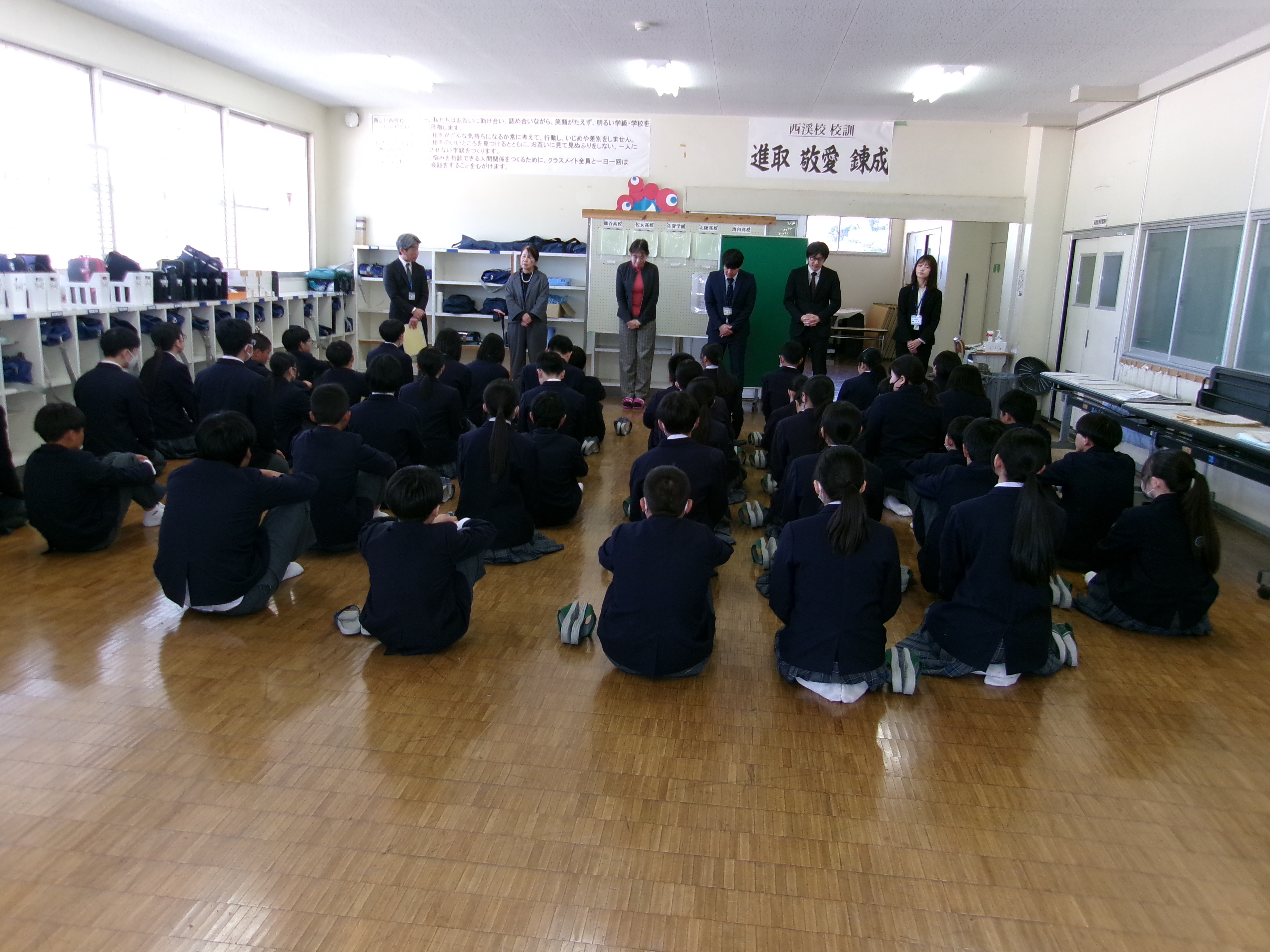 HOME > 開かれた学校 > 学校ニュース > 4/7 新学期スタート 4/7 新学期スタート 入力日2026年4月13日 内容 4月7日(火)新学期がスタートしました。 本年度も「ふるさとに学び、志をもち、共に高め合う西渓っ子」の育成を目指し、児童生徒が安心して学べるよう職員一同、全力で指導・支援いたします。 保護者、地域の皆さまにおかれましては、引き続き本校の教育活動へのご理解とご協力をよろしくお願いいたします。 反射シール配布 多久幹部派出所長様、学校教育課長様、交通安全協会副会長様、防災安全課安心安全係長様が早朝から来校してくださいました。 赴任式 13名の新しい先生方をお迎えしました。 始業式 新しい校長先生の話 ブロック集会(中学年:5~7年生) ブロック集会(高学年:8~9年生) 閲覧数238 前へ 次へ