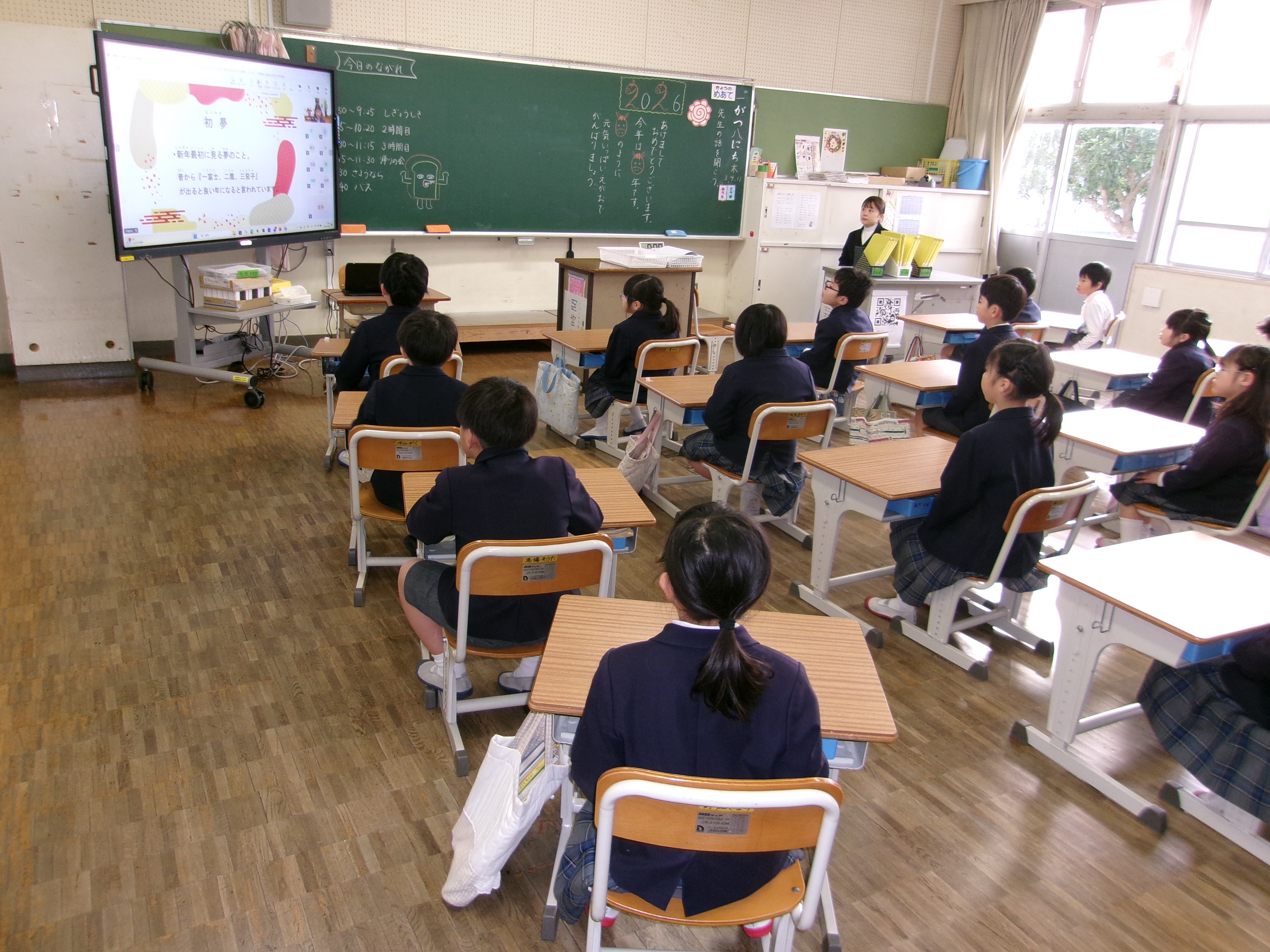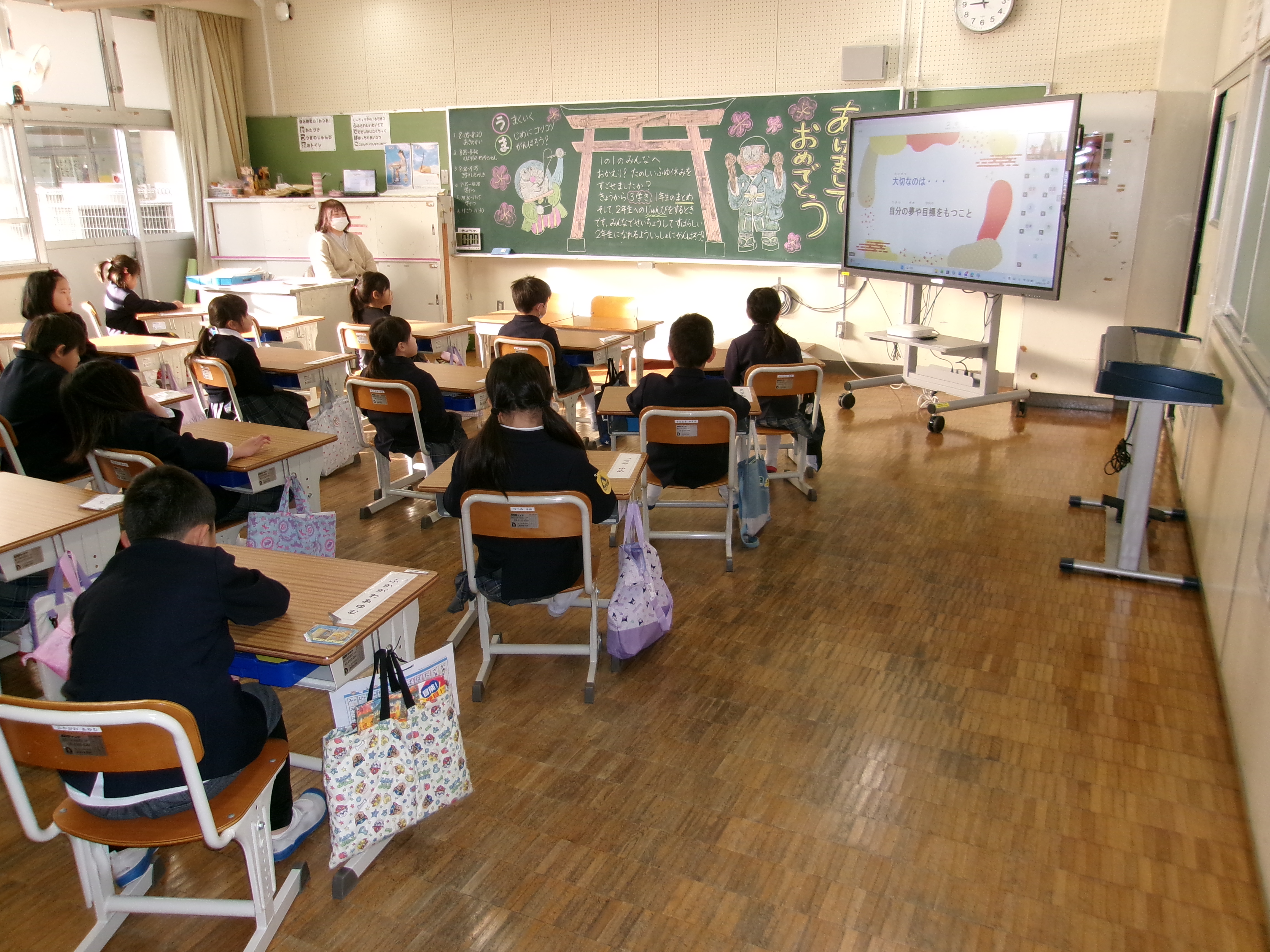 3学期は、10歳の集いや立志式、卒業式など、大切な行事がたくさんあります。最後の学期を充実させ、次のステップに向けて頑張ってほしいと願っています。1年生↓