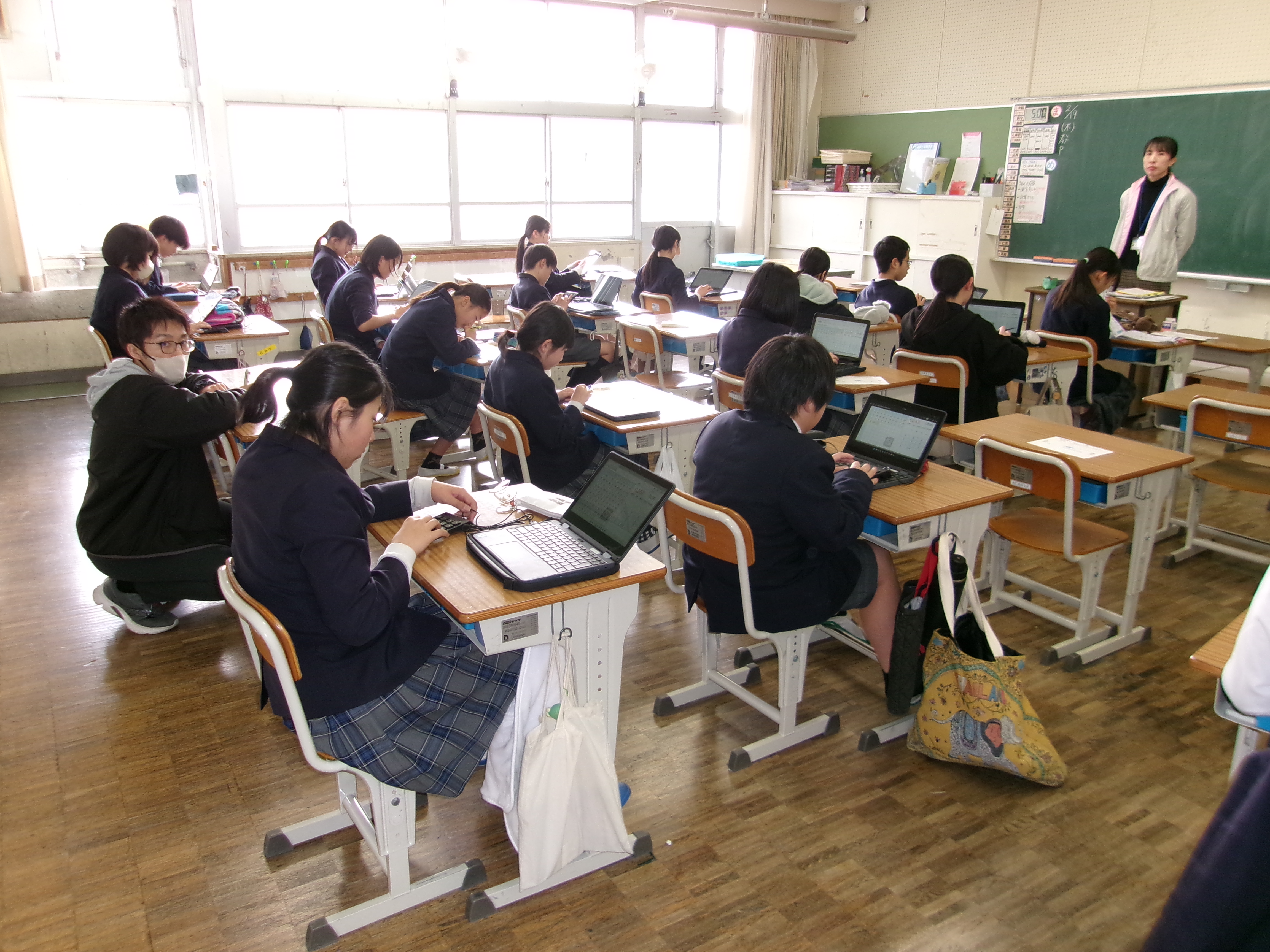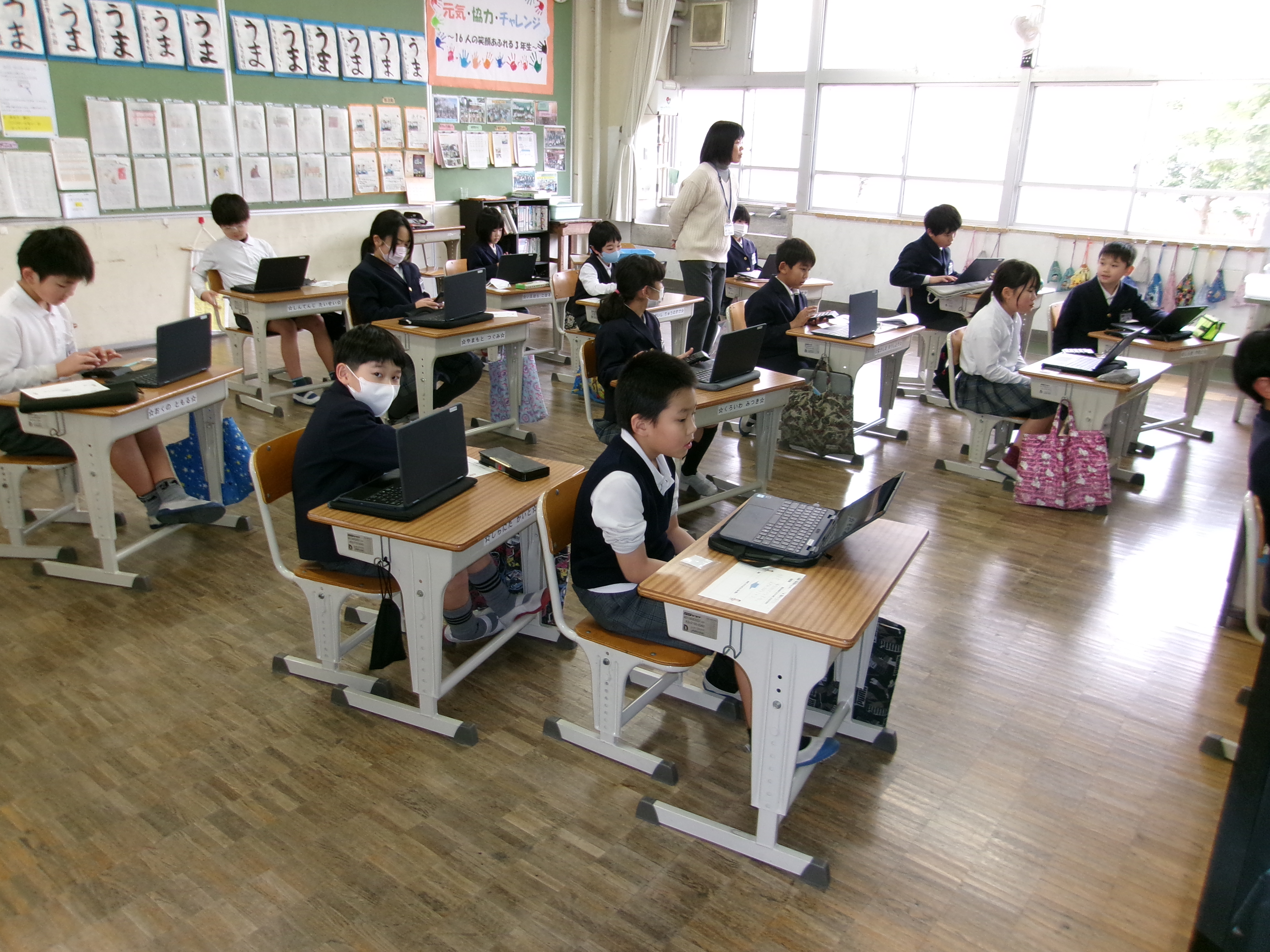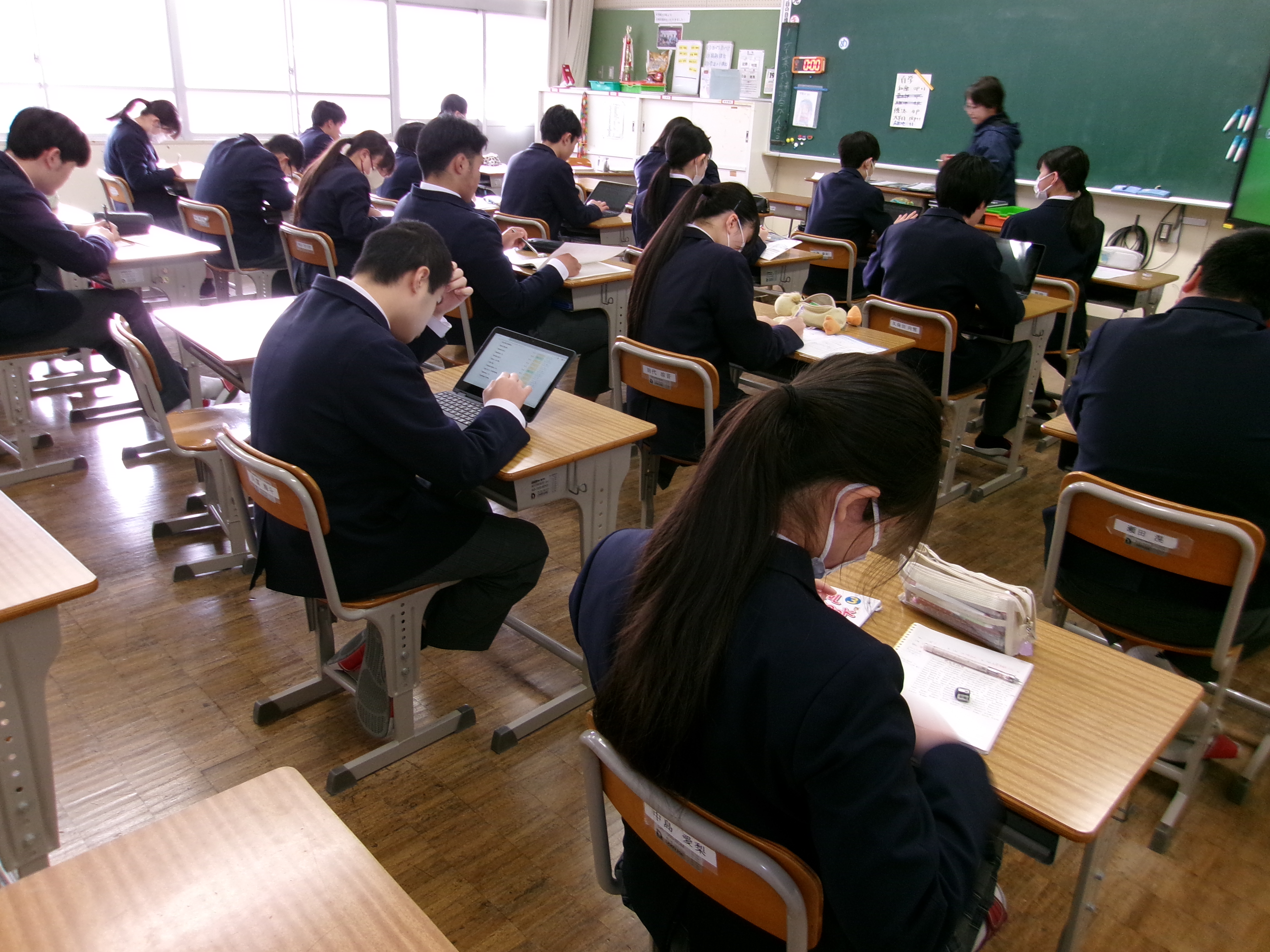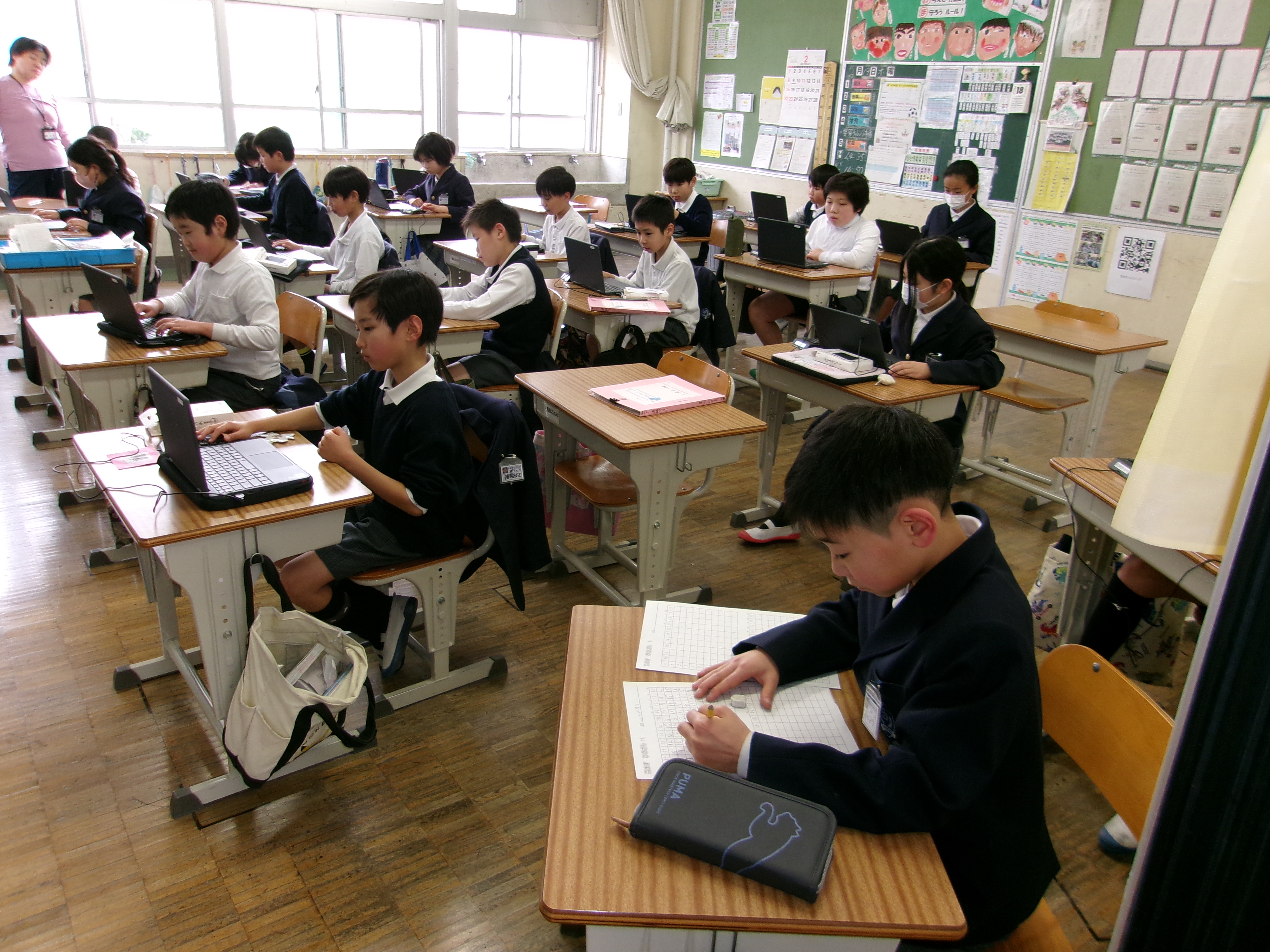 当日の教室では、キーボード入力の音や鉛筆の走る音だけが響き、どの学年も集中して学習に取り組む姿が見られました。
