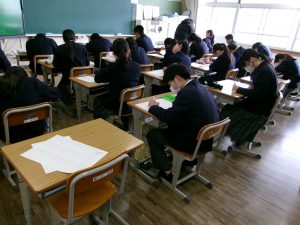 1~6年生は百ます計算、7・8年生は漢字学習、9年生は受験に向けた取り組みと、学年ごとに内容を設定して実施しました。