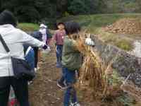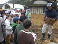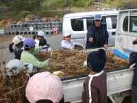 HOME > 教育活動 > 学校ニュース > 12/12「3年生そばの刈り取り」 12/12「3年生そばの刈り取り」 入力日2025年12月16日 内容12月12日(金)、「納所里づくり委員会」「納所老人会」の皆さんのご協力を得て、9月に種まきをしたそばの刈り取りをしました。実のついたそばを初めて見て、子どもたちは一様に「これがそばなの?」という反応でした。後の作業がしやすいように、刈ったそばは小さくまとめて、藁で束ねました。子どもたちは紐ではない慣れない藁で束ねる作業にずいぶん苦心していました。トラック一杯に刈り取ったそばは学校で陰干しをし、今度はそばの脱穀を体験します。 閲覧数1,697 前へ 次へ