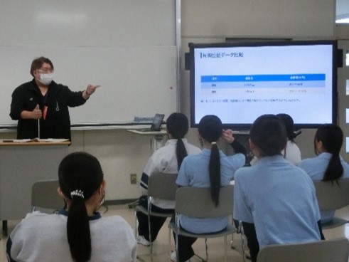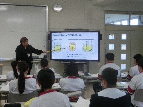 令和7年12月15日(月)、16日(火)多久市社会福祉協議会主催「福祉の種まきプロジェクト(福祉体験学習)」の一環として、健康福祉系列1、2年生を対象に高齢者疑似体験講座を実施していただきました。社会福祉協議会の役割や地域福祉の講話の後、ケアハイツやすらぎの支援相談員 田中優一様より「~優しさを根拠に変える~」をテーマに老化に伴う動きや転倒のメカニズムについて講義をしていただきました。疑似体験セットを装着して移動やバランスなど4つのテストを行いました。生徒たちは、これまで「なんとなくイメージ」していた高齢者の動きを実際に体験して数値化したことで、単に気持ちの優しさから人々を助けるのではなく、科学的な根拠に基づいた適切な手助けの重要性に気づくことができていました。