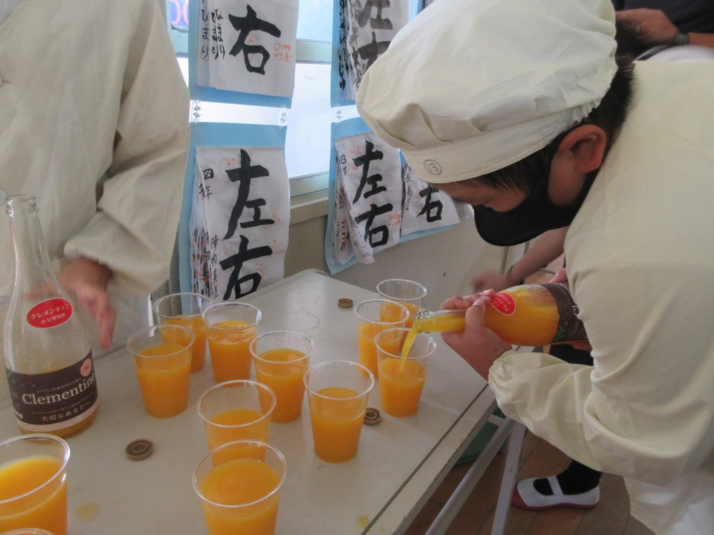 4年生は給食を食べ終えてから、最後にクレメンティンジュースを飲んでいるみたいでした。