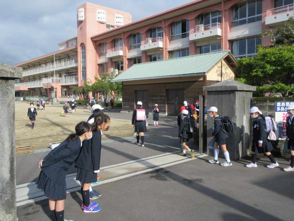 早い児童は7時20分ぐらいには正門に立ってくれていました。