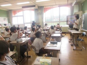 9月3日(金)の5時間目、小学生向けDV等暴力予防教育事業の一環で、佐賀県DV総合対策センターの坂田佳苗先生にお越しいただき、多良小学校の5年生に「友達とのよりよい関係について」のお話をしていただきました。