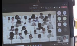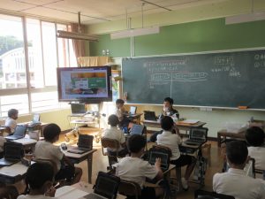 実際に、各家庭と学校をつないでオンライン授業を実施することを想定して、社会科の授業で模擬オンライン授業を行いました。