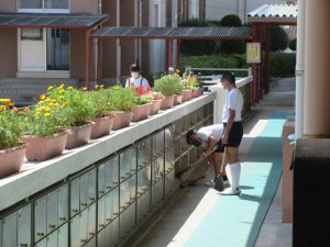 3年生の彪麻さんは、階段掃除でしたが、一人で2階から1階までの階段を一人できれいに拭き上げてくれました。頑張りましたね。すばらしいです。