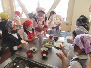 食改協の皆さんがグループに1人ずつ付いていただき、ご指導をいただきながら、子どもたちは楽しそうに取り組んでいました。