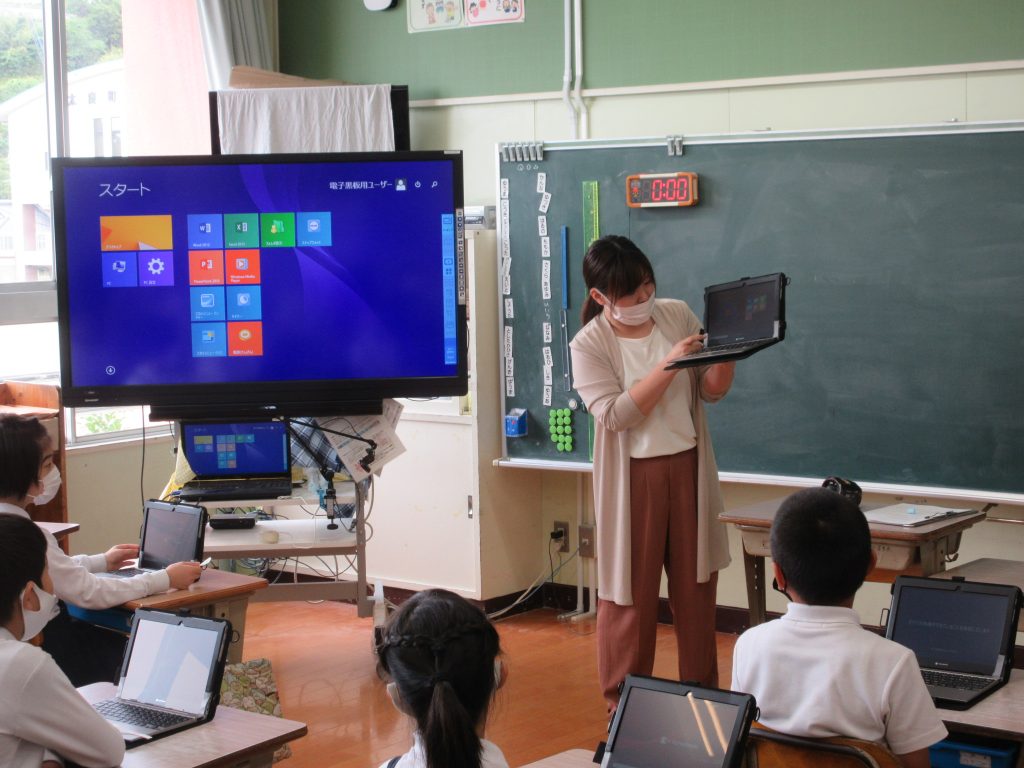 先日、6年生が一人一台のタブレットPCにログインテストを行いましたが、5月27日(水)には、4年1組の子どもたちが実際にログインをしました。