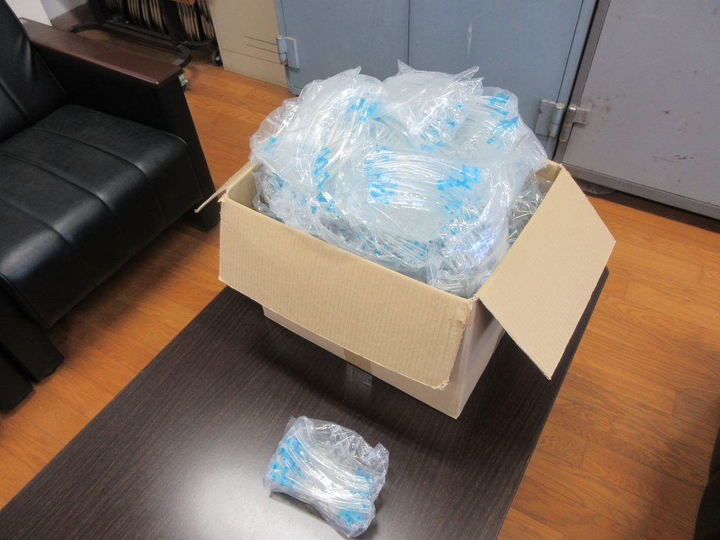 ただ、組み立て式であり、中学年、低学年の児童では組み立てができないだろうということと、現在使用しているフェイスシールド同様に、全ての児童の名前を貼ってから配付しようと考えています。