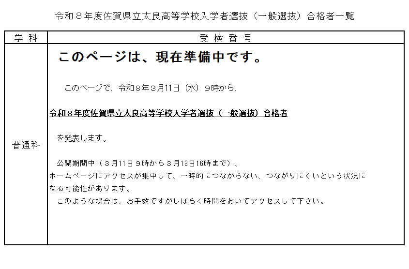 令和8年度一般選抜合格者発表