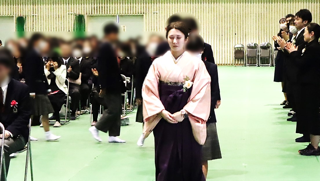 在校生代表として、生徒会長の岩石さんが送辞を述べ、これに卒業生代表として、元生徒会長の峰松さんが、お世話になった保護者や先生、友人たちへの感謝の答辞を述べると、会場は涙に誘われました。
