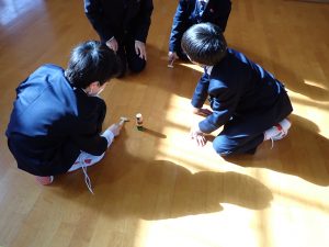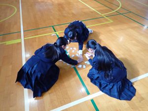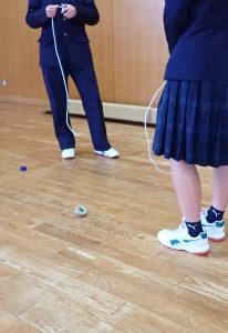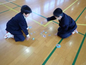 HOME > 開かれた学校 > 学校生活 > 昔遊び(1年1/20、1年1/22、3年1/23) 昔遊び(1年1/20、1年1/22、3年1/23) 入力日2026年1月23日 閲覧数46 1月20日、22日、23日の昼休みに、体育委員会と福祉委員会が主催して「正月遊び」を行いました。日本の文化に触れて、体を動かすきっかになるように、羽子板、けん玉、だるま落とし、めんこ、かるた、こま、などを準備しました。参加した生徒は楽しそうに遊んでいました。 一覧へ戻る 次へ