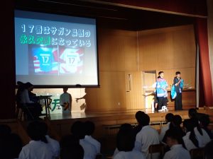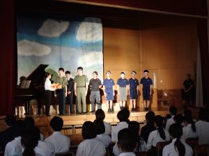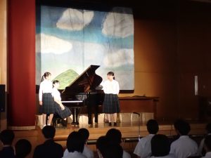 HOME > 教育活動 > 学校行事 > 文化発表会①(10/17) 文化発表会①(10/17) 入力日2025年10月17日 閲覧数29 10月17日(金)文化発表会を実施しました。 『彩 ~世界を染めろ! Infinite colors~』をテーマに、各学年のステージ発表、展示発表を行いました。 生徒が頑張って取り組んだ成果を十分に発揮し、大変素晴らしい文化発表会でした。多くの保護者や地域の方にも御来校いただきました。 〇2年ステージ発表「ディオニスの苦悩」 〇1年ステージ発表「トス チューン☆」 3年ステージ発表「あの日の約束」 前へ 一覧へ戻る 次へ