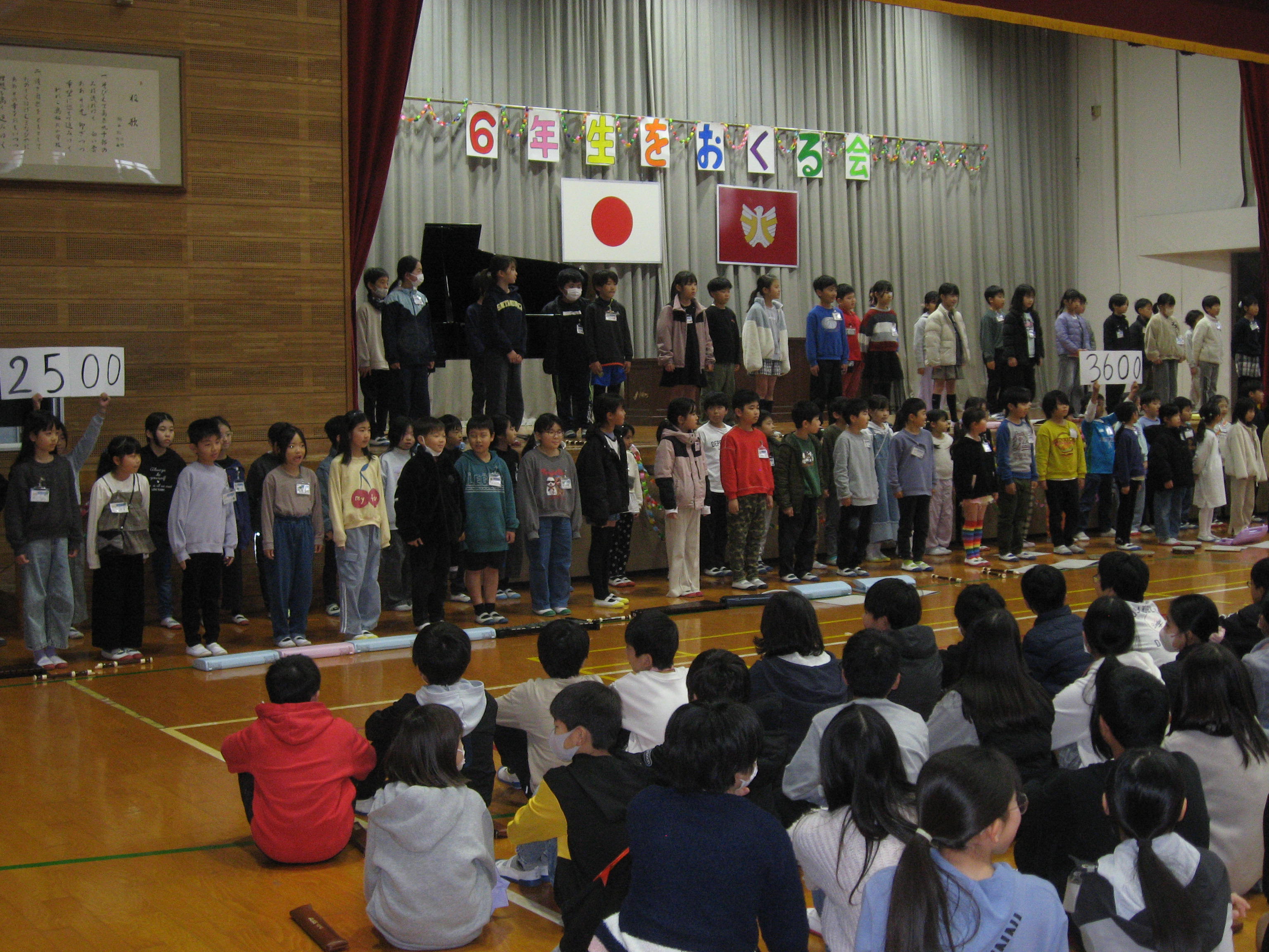 HOME > お知らせ > イベントギャラリー > 6年生とのお別れ集会 6年生とのお別れ集会 入力日2026年3月2日 閲覧数24 2月27日金曜日の2,3時間目に体育館で6年生を送るお別れ集会を行いました。1年生から5年生の子供たちが、それぞれ6年生への感謝の気持ちを込めて劇や歌、合奏などを披露しました。6年生は、終始嬉しそうに発表を見ていました。各学年の思いがこもった発表の後は、6年生がお別れの言葉と合奏を披露し、迫力のある6年生の発表は思わず涙が出てしまうほど素晴らしいものでした。心温まるお別れ集会をしてくれた鳥栖北小の子供たちには、感謝の気持ちでいっぱいです。 一覧へ戻る 次へ