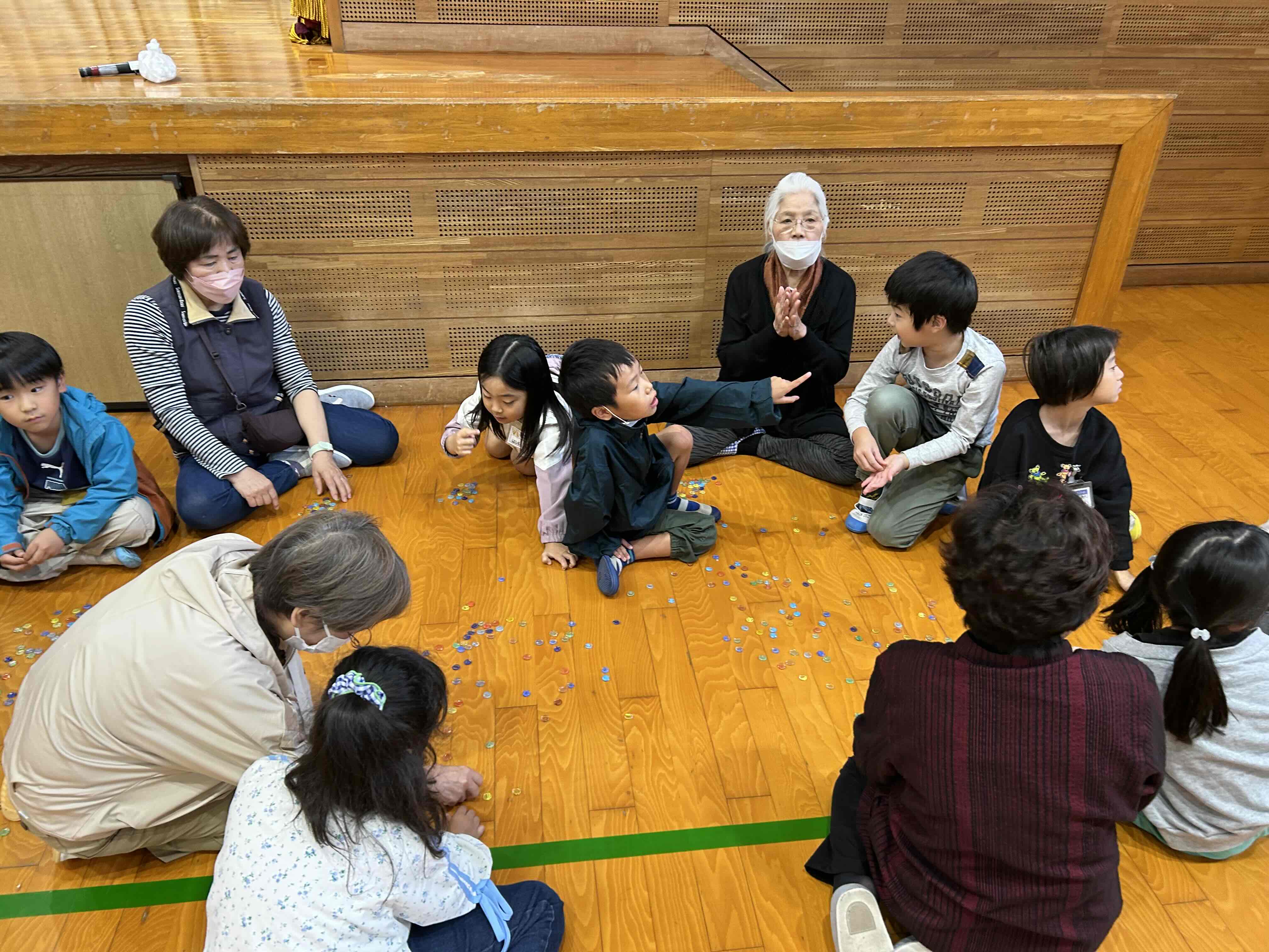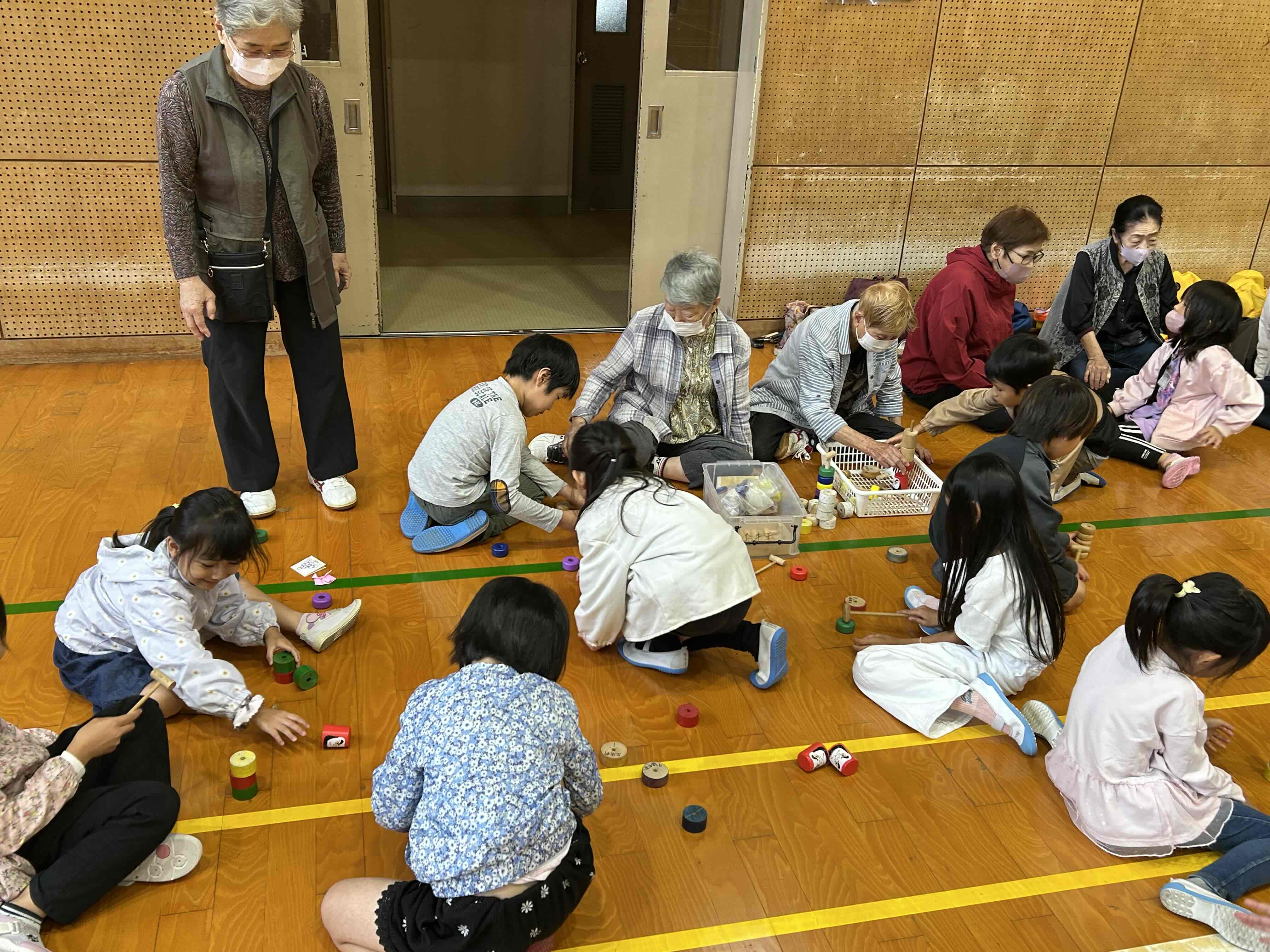お手玉、コマ回し、けん玉、おはじき、竹とんぼなど、2年生は地域のみなさまと一緒に楽しい時間を過ごしました。