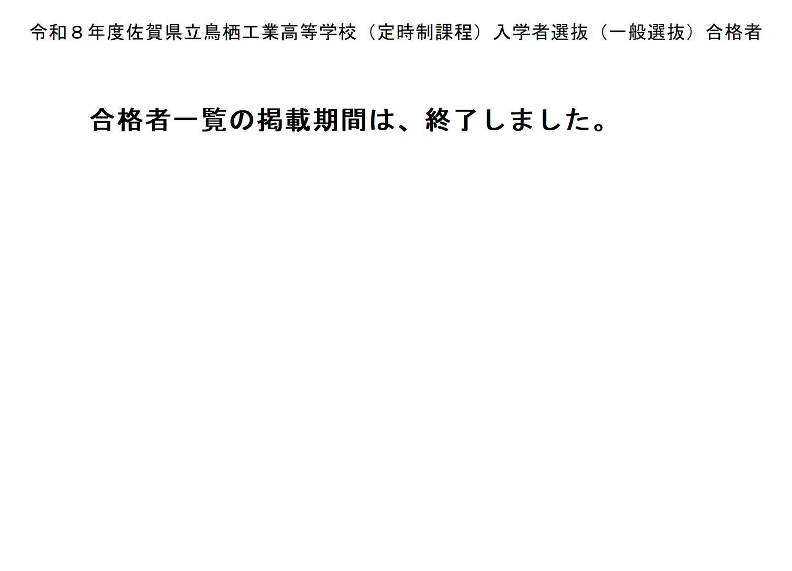 令和8年度一般選抜合格者発表