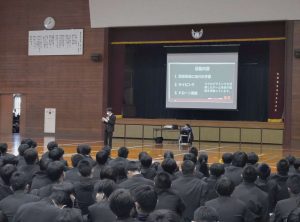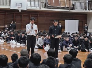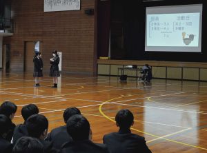 4月9日(木)、嬉野校舎体育館で両校舎合同の対面式、部活動紹介を行いました。