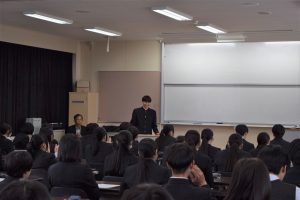 HOME > 教育活動 > 嬉野校舎(総合学科)topics > 進路体験発表会 進路体験発表会 入力日2026年3月10日 閲覧数37 2月5日(木)、進路体験発表会を行いました。10名の3年生が進路を決めるまでの流れや就職・進学に向けて大変だったこと、後輩へのアドバイス、今後の目標を発表しました。実際に進路選択を経験した3年生の言葉には重みがあり、1、2年生は真剣な表情で耳を傾け、メモを取っていました。 前へ 一覧へ戻る 次へ