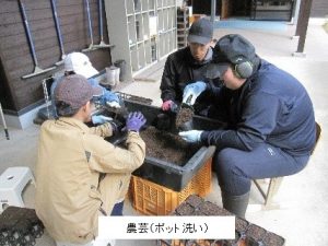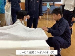 高等部作業学習の授業に中学部3年生が参加して、サービス技能(ベッドメイキング等)や紙工芸・木工・窯業・農芸・布工芸の各班に分かれて体験学習をしました。
