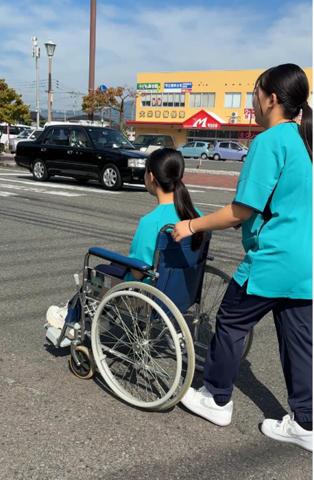 HOME > 学校の様子 > 学校の様子 > 2年生活経営科(生活福祉類型) 車いす校外実習! 2年生活経営科(生活福祉類型) 車いす校外実習! 入力日2025年10月23日 閲覧数38 2年生生活福祉類型の生徒が車いす校外実習を行いました~☆ それぞれ利用者役と介助者役を担当し、校外へ出ました。介助者役の生徒からは『いい天気ですね』、『少し段差があります』など利用者役への声掛けをする様子が見られました^^ 普段、通学路として見慣れた風景ですが、車いすで通ってみると歩道と車道の近さを改めて実感したり、段差が予想以上に多かったり校内では体験できない実習ができました! ↑フットレストを下ろして出発の準備をしています ↑横断歩道を渡っている様子 前へ 一覧へ戻る 次へ