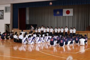 HOME > 学校の様子 > 学校の様子 > SSP杯大会壮行式 SSP杯大会壮行式 入力日2020年6月12日 閲覧数501 6月12日(金)、13日から始まる県高校総体の代替大会であるSSP杯大会に出場する部活動や個人の壮行式が行われました。式の前には、先日の生徒会長選挙の結果をふまえ、新生徒会長以下新しい生徒会役員の紹介も行われました。なお、今回の壮行式は、新型コロナウイルス感染症拡大防止のため、会場となった体育館には選手と3年生が参加し、1,2年生は教室にオンライン配信する形式がとられました。各部のキャプテンの決意表明時には、教室からも大きな拍手がおこっていました。 前へ 一覧へ戻る 次へ