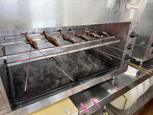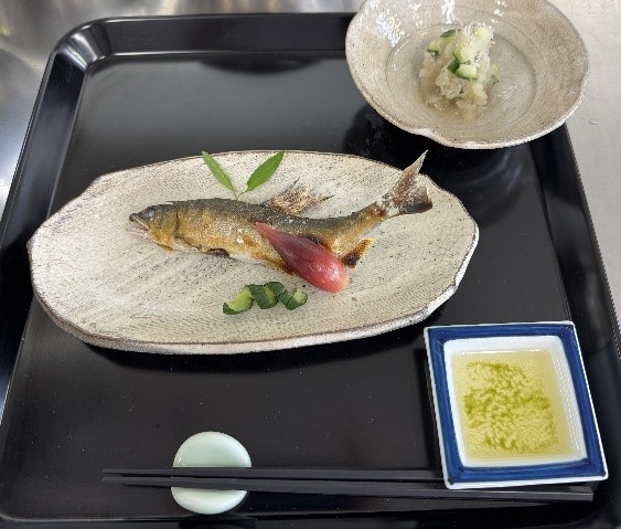 HOME > 学校の様子 > 学校の様子 > 2年 食品調理科「鮎の塩焼き」 2年 食品調理科「鮎の塩焼き」 入力日2025年10月27日 閲覧数11 2年生食品調理科「鮎の塩焼き」 1学期も行った串打ちをし、「鮎の塩焼き」を作りました!1尾丸ごとに串を打つ作業に手間取っていました。先生の指導後、見本を参考に串を打っていましたが、難しそうでした。 「鯛のお造り」の実習も行いました。 また、準1級検定のお弁当作りも頑張って練習しています。 前へ 一覧へ戻る 次へ