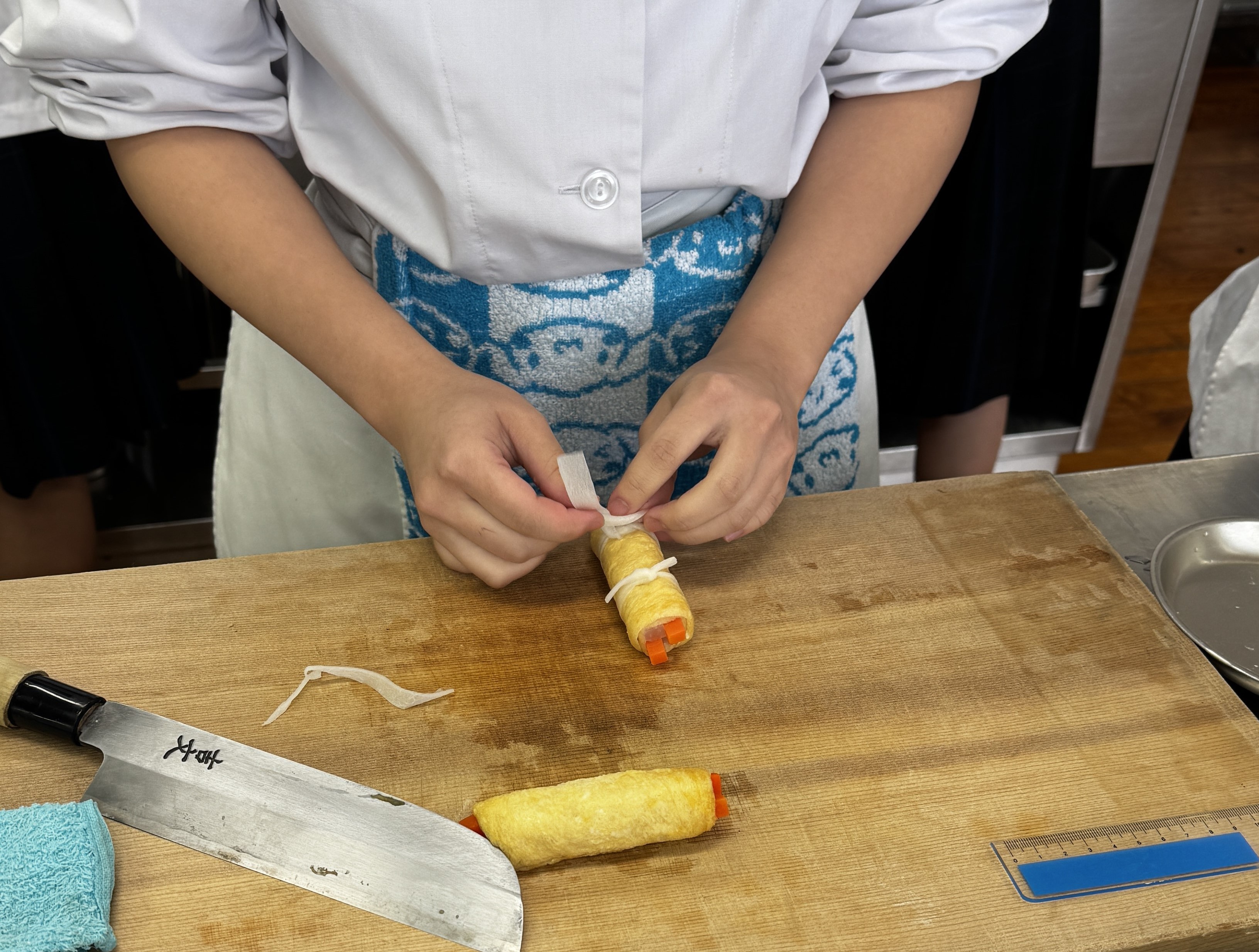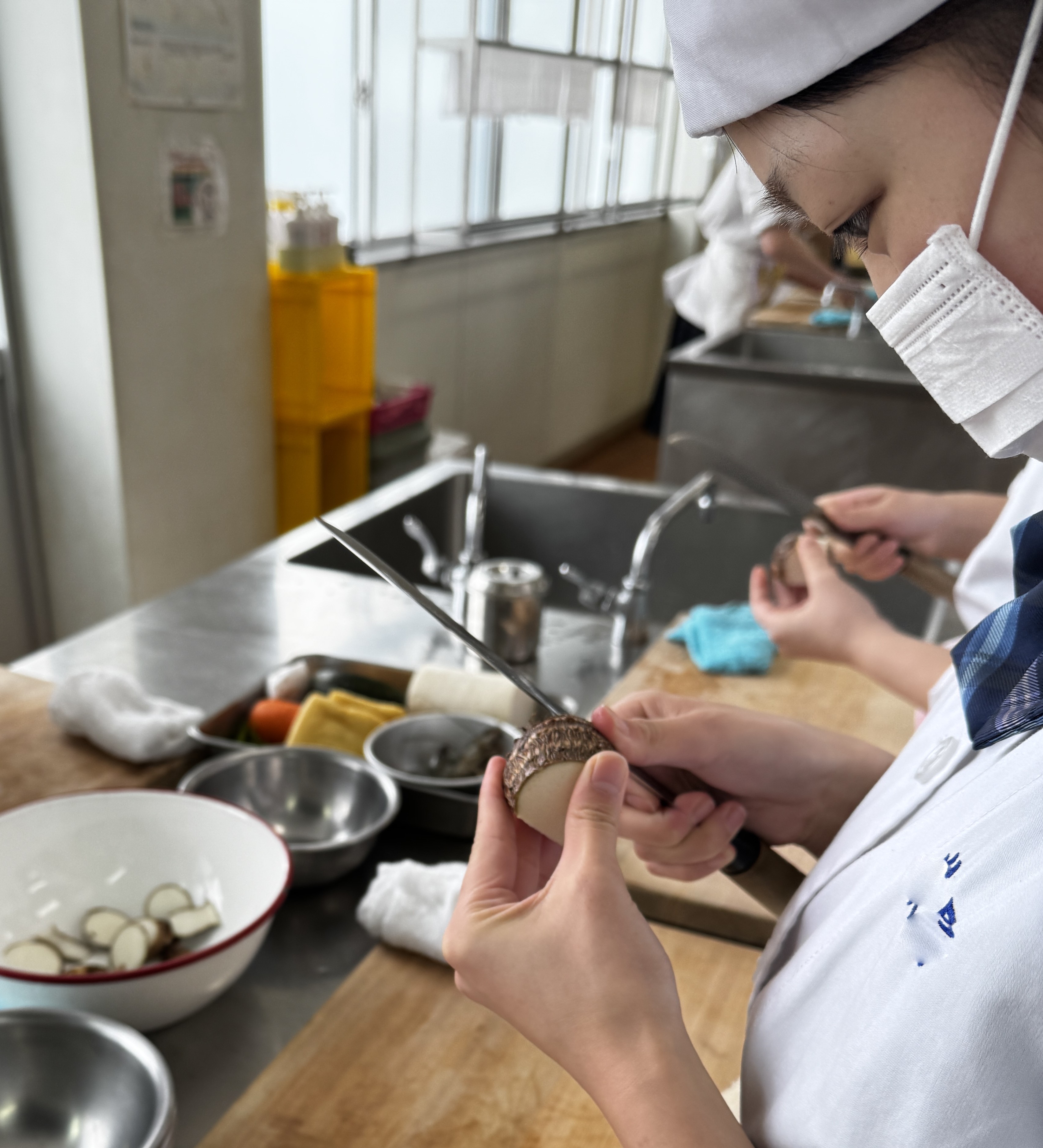 HOME > 学校の様子 > 学校の様子 > 2年 食品調理科 中華料理・松花堂弁当練習 2年 食品調理科 中華料理・松花堂弁当練習 入力日2025年12月3日 閲覧数20 検定の練習もつづく中、中国料理では海老を使用した料理を2品作りました。辛さの調節が難しかったらしく、試食の時は辛い辛いといいながら食べていました。↓ 日本料理では、お造りと潮汁、太巻きを作りました。↓ また、来年の松花堂弁当に向けての練習として、初回は煮物を作りました。12月は松花堂弁当に向けての練習やおせち料理の実習があります。 前へ 一覧へ戻る 次へ
