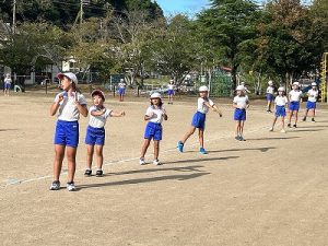 運動場練習が始まりました。朝の時間は応援の見せ合いです。赤組も白組も相手の応援を目を凝らして見ていました。
