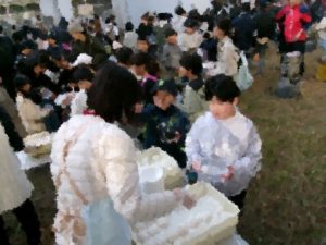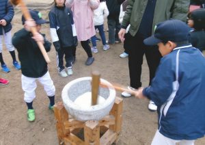 HOME > 学校紹介 > トピックス > もちつき会 もちつき会 入力日2026年1月17日 閲覧数56 1/17(土)PTA主催による「もちつき会」が開催されました。 JA婦人会の皆様、萱方会の皆様の協力を得ながら、楽しく美味しいもちつき会となりました! 子どもたちはもちろん、保護者のみなさん、先生方でもちをつき・・・ あんもちやのりは早々に食べきってしまいましたが、 きなこや砂糖醤油をかけてもらい・・・ 美味しくいただきました!! 父親委員を中心としたPTAの皆様、JA婦人会の皆様、萱方会の皆様、本当にありがとうございました!! 一覧へ戻る 次へ