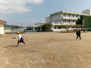 今は卒業式練習のため、体育館用のボールは使えていませんが、運動場では早速ドッジビーで遊ぶ姿もありました!