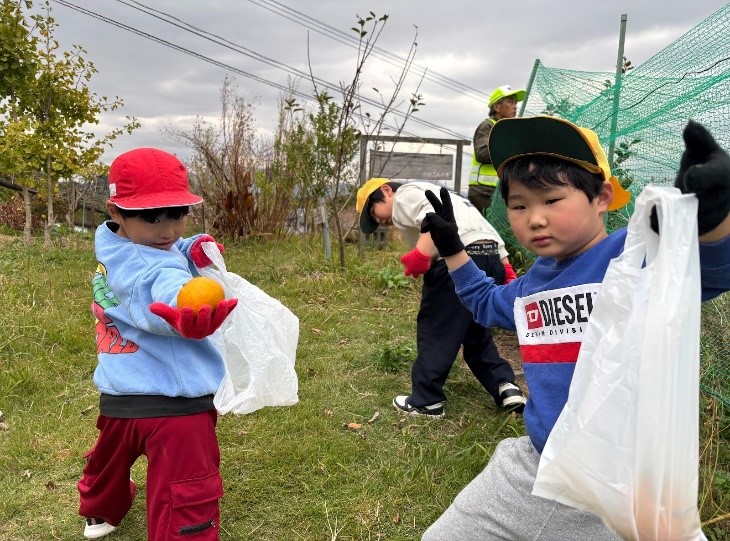 地域の方が子ども達のために手入れをしてくださり、今年もみかん狩りに招待してくださいました!
