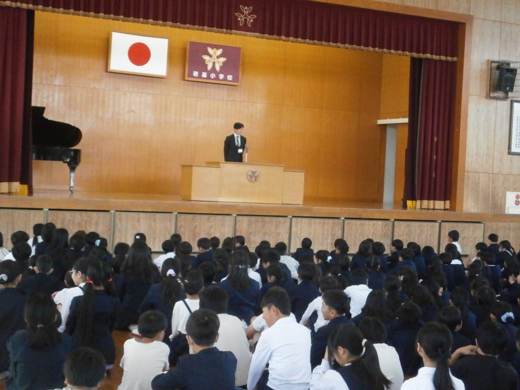 みんなで「元気いっぱい 笑顔いっぱい」の若基小にしようという校長先生のお話を一生懸命聞いていたお友達がたくさんいましたね!