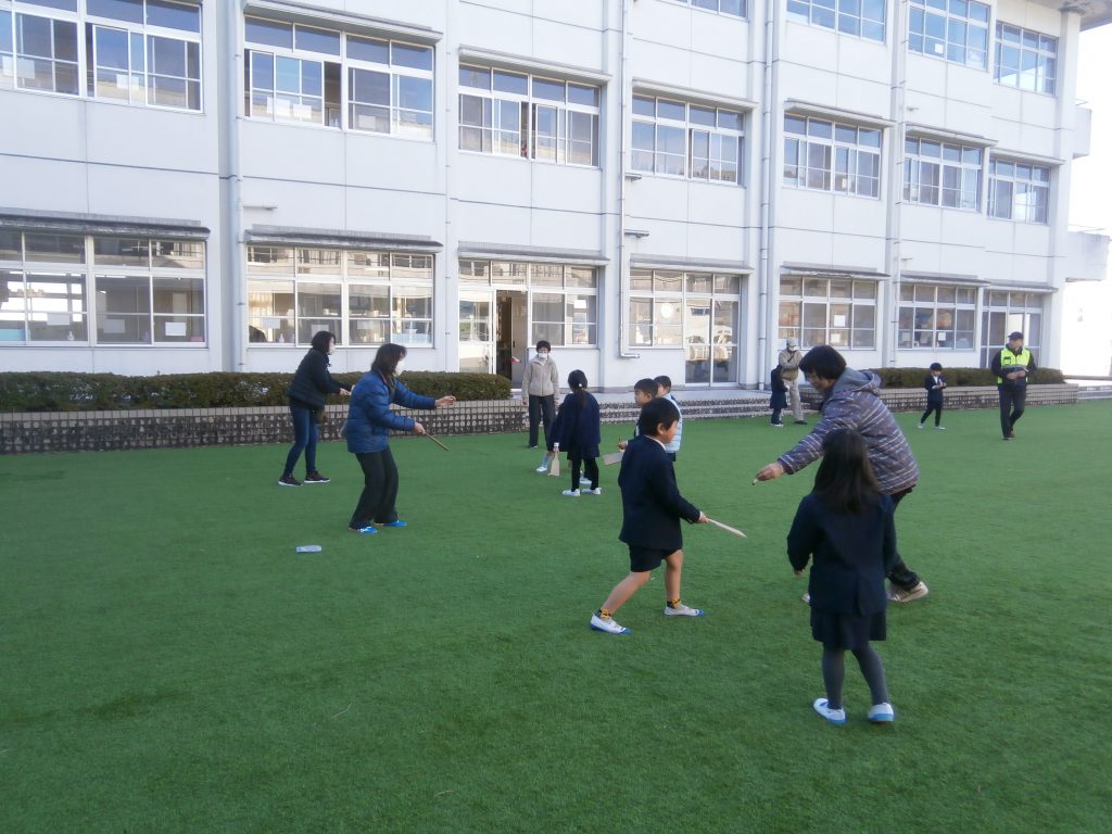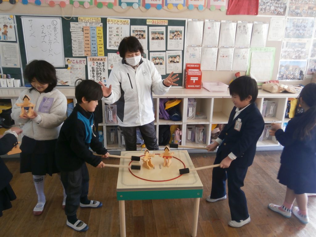1月14日は、1年生の昔遊びにたくさんの地域の方々が来てくださいました。