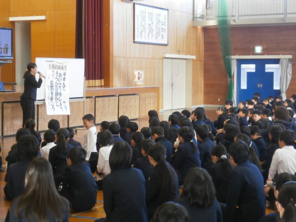生活のお話では、身だしなみを整え、3学期も健康に気を付けて頑張ることや1月の生活のめあてについて確認しました。
