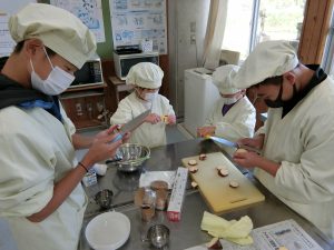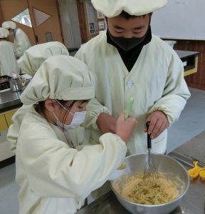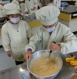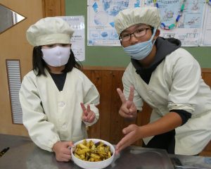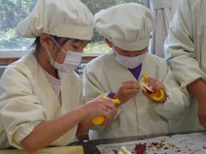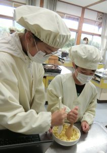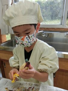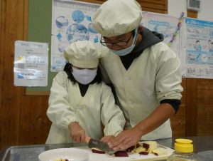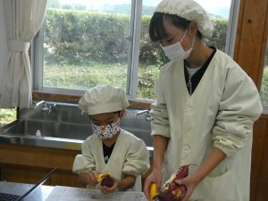 11月12日(水)1・6年生で一緒に掘ったサツマイモを使ってお菓子作りをしました。