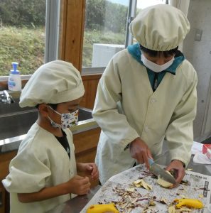 慣れてくると1年生も一人で上手に剥けるようになりました。