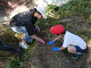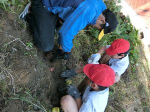 HOME > わかきっ子ニュース > イベントギャラリー > 1・6年生 芋ほり 1・6年生 芋ほり 入力日2025年11月7日 閲覧数100 11月7日(金)1年生と6年生で5月に植えたサツマイモを掘りました。 6年生はサツマイモを見つけたら、1年生に教えてあげていました。 サツマイモを傷つけないように優しく掘っていました。 集中して掘っていると、なんと土の中からモグラの赤ちゃんが!! みんなびっくりでした。 1年生の顔より大きいサツマイモもありました。 来週はとれたサツマイモでお菓子作りをします! 一覧へ戻る 次へ