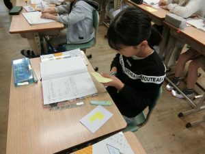 HOME > わかきっ子ニュース > イベントギャラリー > 4年生 面積の学習 4年生 面積の学習 入力日2025年11月14日 閲覧数4,819 4年生は、最近算数の面積の学習を頑張っています。 L字型の面積をどうしたら求められるのか考えました。 紙を切ったり貼ったり、実際に動かして考えていました。 友達と話し合うことで新しい考えにも気づいていました。 長方形や正方形の公式を使いながら面積を求めようとしていました。 考えを自分の言葉でみんなに説明できています。 最後に、学んだことを振り返りに書き、次の学習に生かそうとしていました。 前へ 一覧へ戻る 次へ