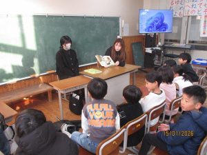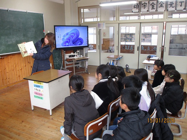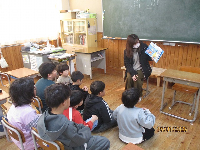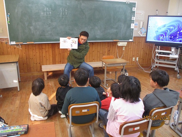 HOME > 学校行事スナップ写真 > R8.1.15 PTA総務福祉部の読み聞かせ R8.1.15 PTA総務福祉部の読み聞かせ 入力日2026年1月19日 閲覧数9 今年度3回目のPTA総務福祉部の読み聞かせをしていただきました。 1年生から3年生の教室でお二人ずつ読み聞かせをしていただきました。 子供たちは読み聞かせが大好きで、熱心に聞き入っていました。 朝のお忙しい時間に大変ありがとうございました。 一覧へ戻る 次へ